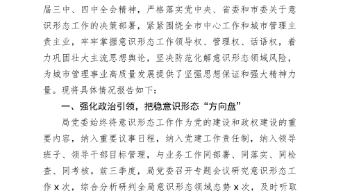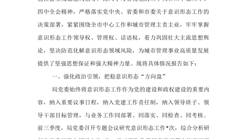 市城管局黨委關(guān)于2025年前三季度落實(shí)意識(shí)形態(tài)工作責(zé)任制情況的報(bào)告