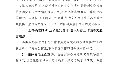 XX縣委宣傳部關(guān)于2025年上半年全縣意識(shí)形態(tài)工作的總結(jié)