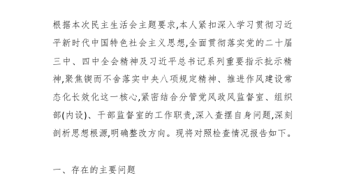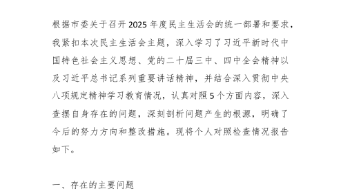 領(lǐng)導(dǎo)干部2025年度民主生活會(huì)對(duì)照材料
