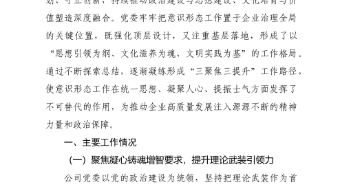 國(guó)企黨委2025年前三季度意識(shí)形態(tài)工作總結(jié)