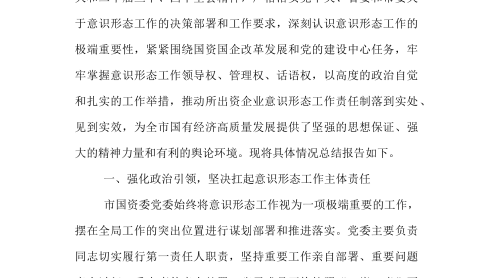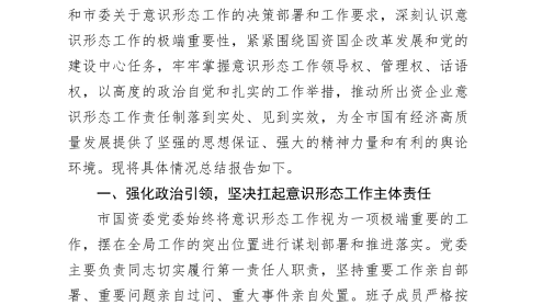 市國(guó)資委委員會(huì)關(guān)于2025年前三季度意識(shí)形態(tài)工作責(zé)任制落實(shí)情況總結(jié)報(bào)告