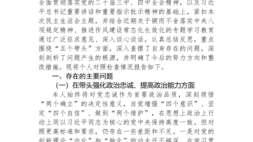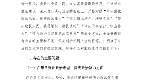 局領(lǐng)導(dǎo)干部2025年度專(zhuān)題民主SH會(huì)檢視剖析材料(“五個(gè)帶頭”)
