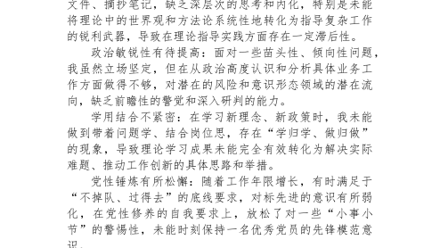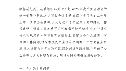 2025年度民主生活會(huì)個(gè)人對(duì)照檢查(財(cái)政)
