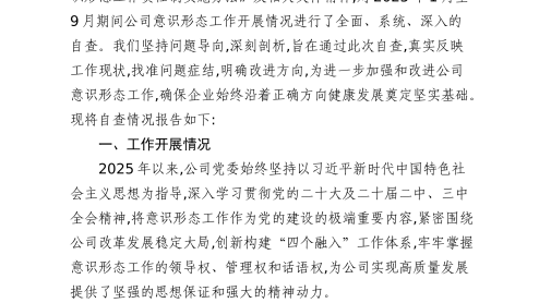 國(guó)企2025年度意識(shí)形態(tài)工作自查報(bào)告