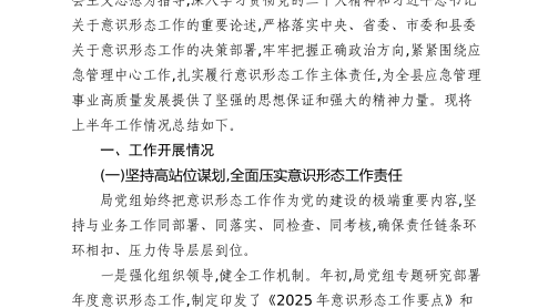 XX縣應(yīng)急管理局2025年上半年意識(shí)形態(tài)工作總結(jié)