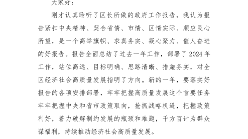 在2024年兩會(huì)分組討論上的發(fā)言(對(duì)政府工作報(bào)告點(diǎn)評(píng)肯定)